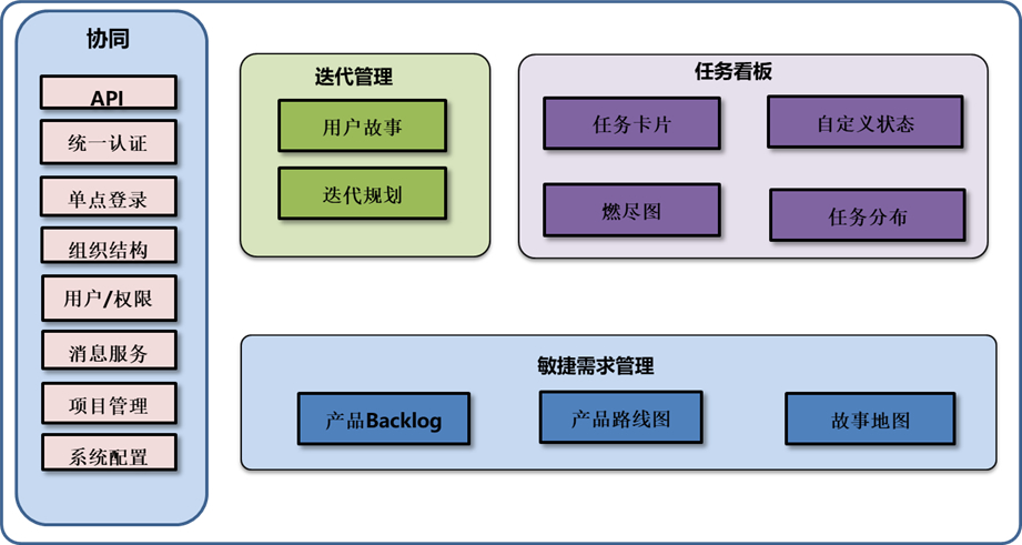 • 協同管理部分(包括平臺的API,認證管理,組織結構,權限管理以及系統的配置);